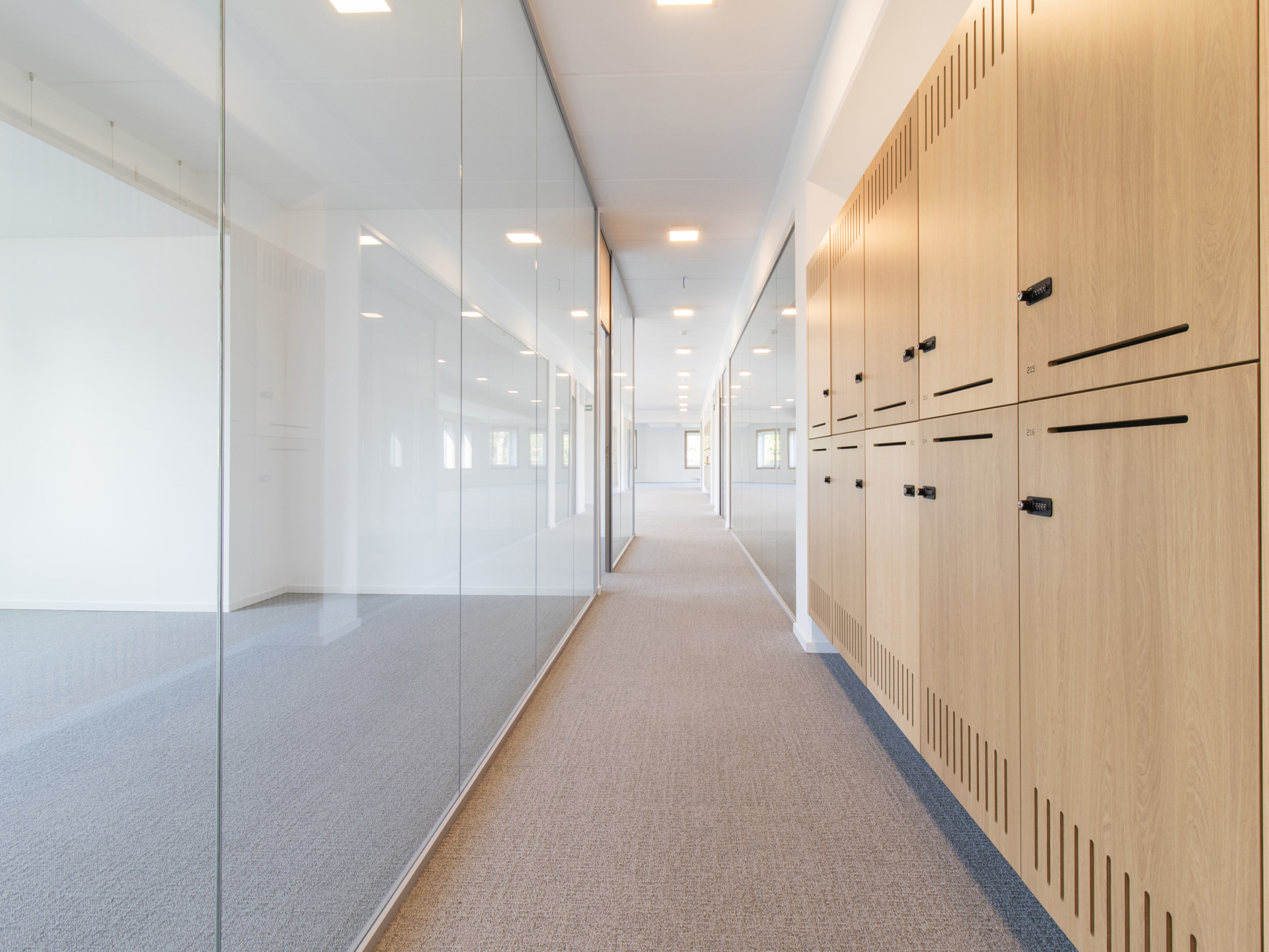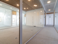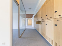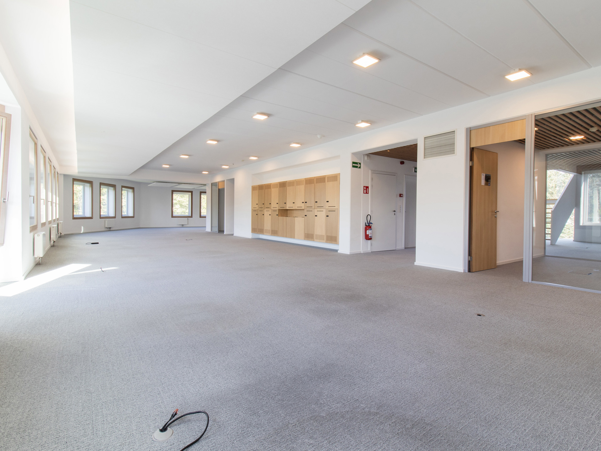 L’espace de travail est très agréable et extrêmement lumineux avec vue sur la verdure. Les cloisons vitrées donnent une vue traversante et les espaces sont circulants (sans sas, ni portes) et très bien imaginés.