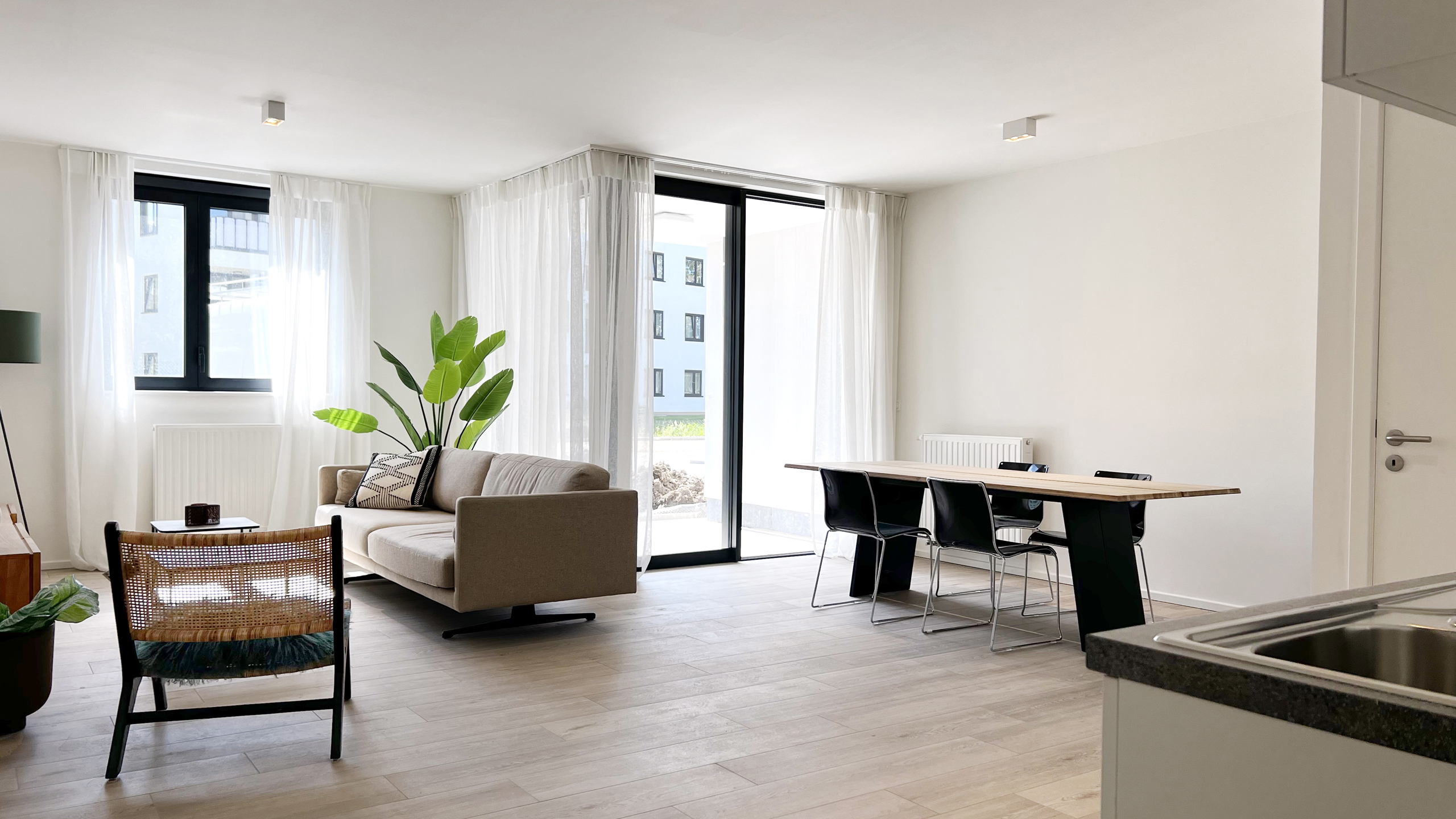 Lumineux living (42m²) avec accès terrasse orientée sud-est, carrelages