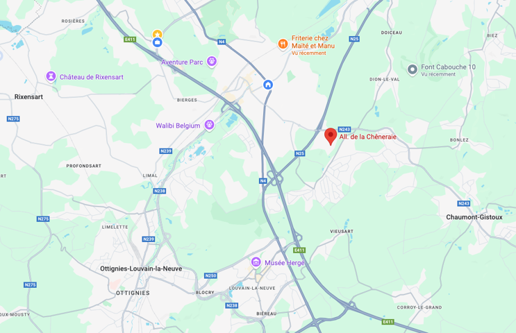 Terrain à bâtir situé dans le quartier de Céroux-Mousty, dans la commune d’Ottignies-Louvain-la-Neuve. À 9 minutes en voiture de la gare d'Ottignies, à 400 mètres de la place communale de Céroux, à 8 minutes de la clinique Saint-Pierre Ottignies, et à 14 minutes en voiture de la N275.